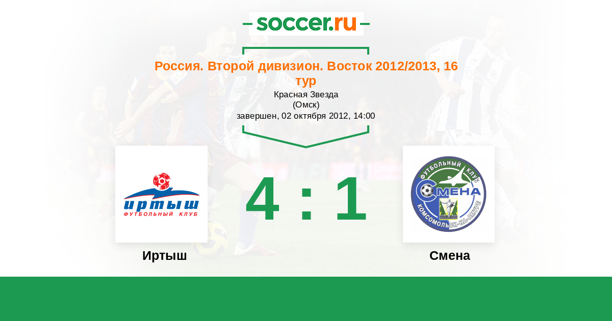 Россия. 2-й дивизион. Восток 12.05.2013 Смена Логотип футбольный клуб Смена (Комсомольск-на-Амуре) 1:1 Логотип футбольный клуб Иртыш (Омск) Иртыш