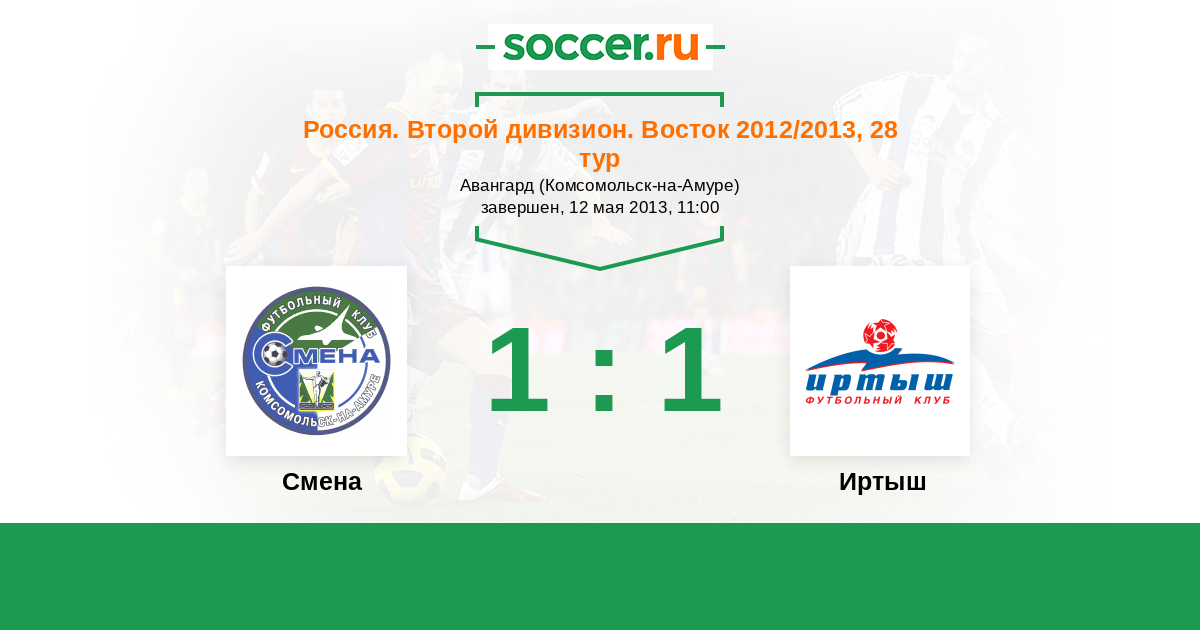 Россия. 2-й дивизион. Восток 02.05.2012 Смена Логотип футбольный клуб Смена (Комсомольск-на-Амуре) 3:3 Логотип футбольный клуб Иртыш (Омск) Иртыш