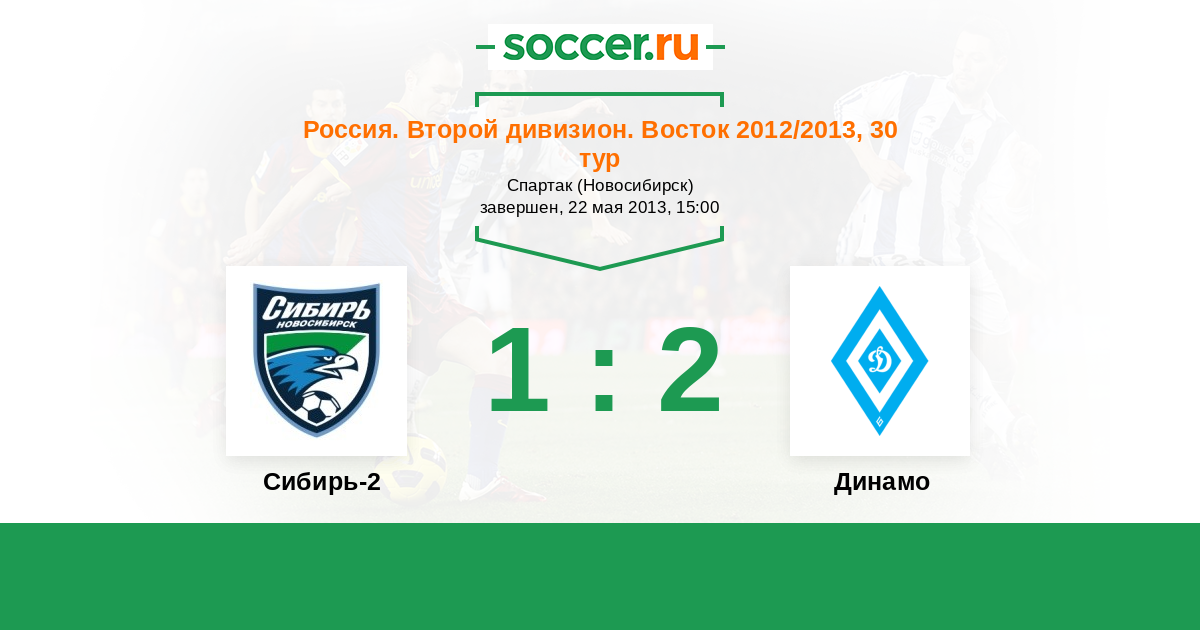 Россия. 2-й дивизион. Восток 11.10.2012 Сибирь-2 Логотип футбольный клуб Сибирь-2 (Новосибирск) 2:0 Логотип футбольный клуб Динамо Барнаул Динамо Барнаул