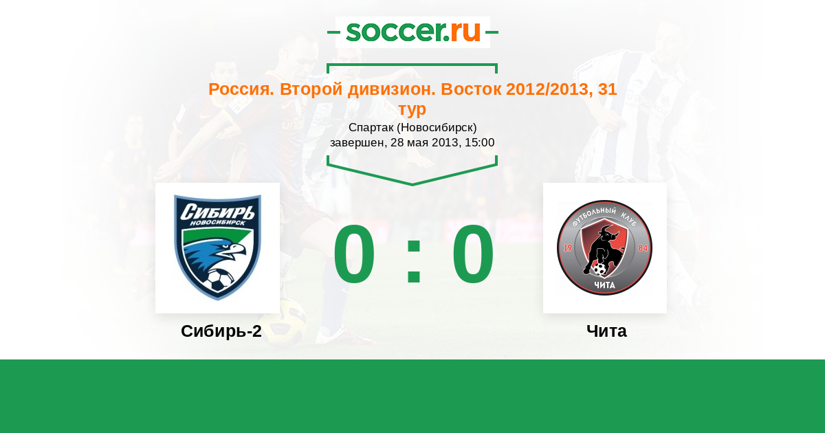 Россия. 2-й дивизион. Восток 25.05.2014 Сибирь-2 Логотип футбольный клуб Сибирь-2 (Новосибирск) 0:1 Логотип футбольный клуб Чита Чита