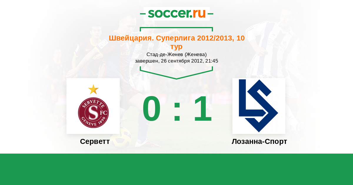 Швейцария. Суперлига 23.02.2013 Серветт Логотип футбольный клуб Серветт (Женева) 1:0 Логотип футбольный клуб Лозанна-Спорт Лозанна-Спорт