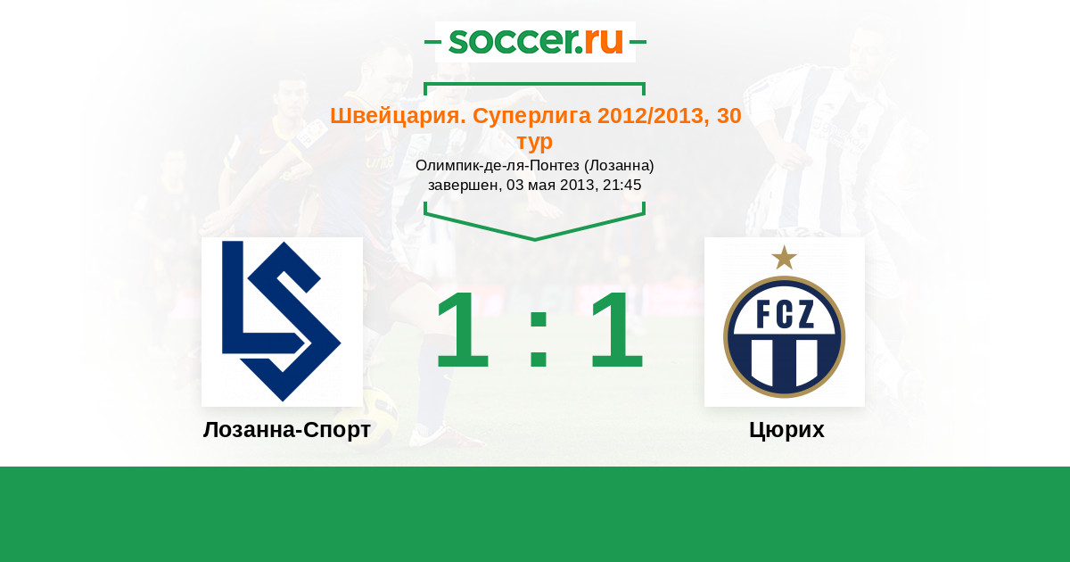 Швейцария. Суперлига 09.05.2021 Лозанна-Спорт Логотип футбольный клуб Лозанна-Спорт 2:2 Логотип футбольный клуб Цюрих Цюрих