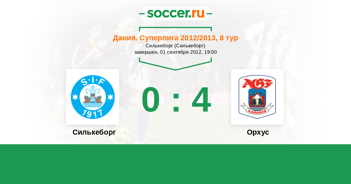 Дания. Суперлига 10.12.2012 Орхус Логотип футбольный клуб Орхус 3:3 Логотип футбольный клуб Силькеборг Силькеборг