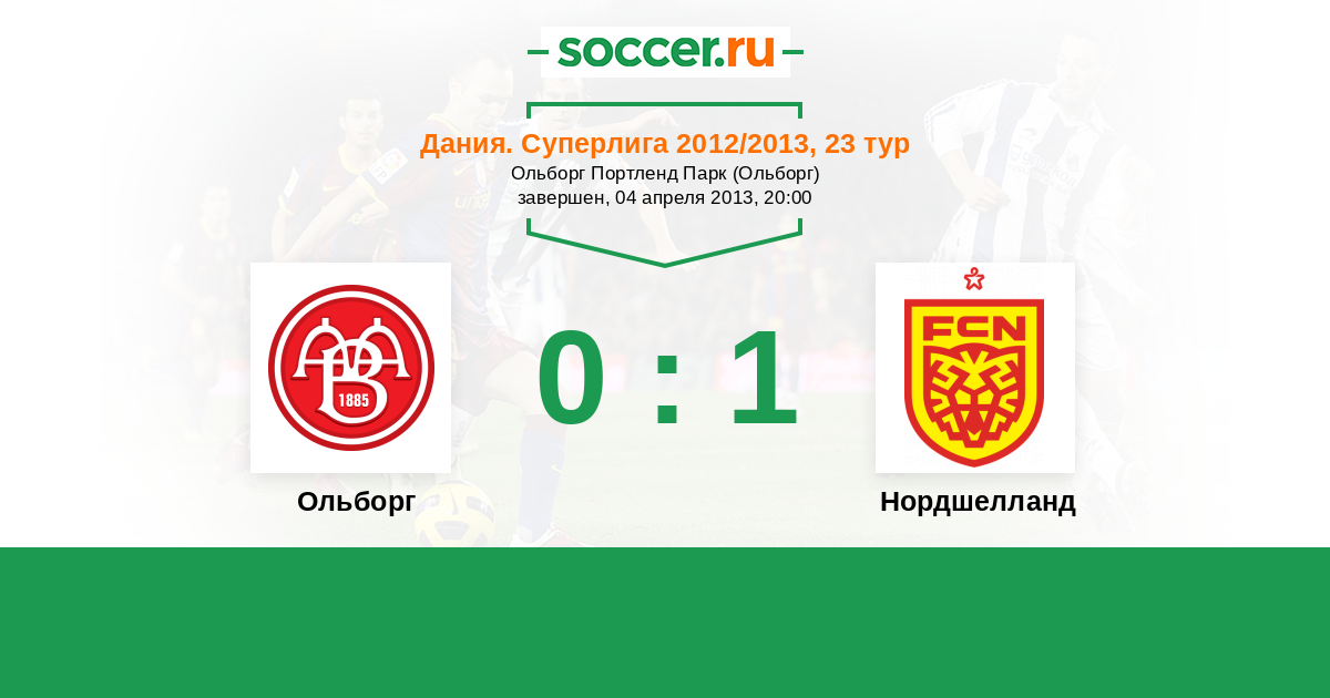 Дания. Суперлига 26.10.2012 Нордшелланд Логотип футбольный клуб Нордшелланд (Фарум) 1:0 Логотип футбольный клуб Ольборг Ольборг