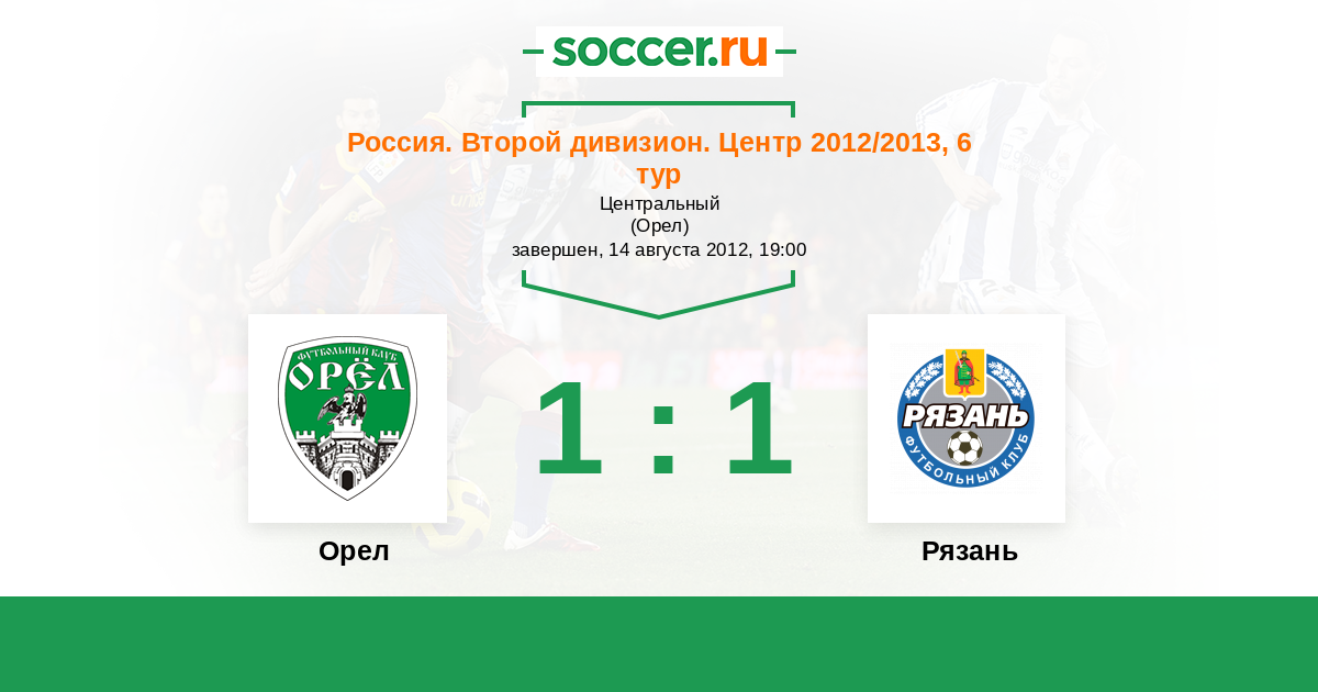 Россия. Вторая лига. Группа 3 16.04.2013 Звезда Рз Логотип футбольный клуб Звезда Рз (Рязань) 1:1 Логотип футбольный клуб Орел Орел