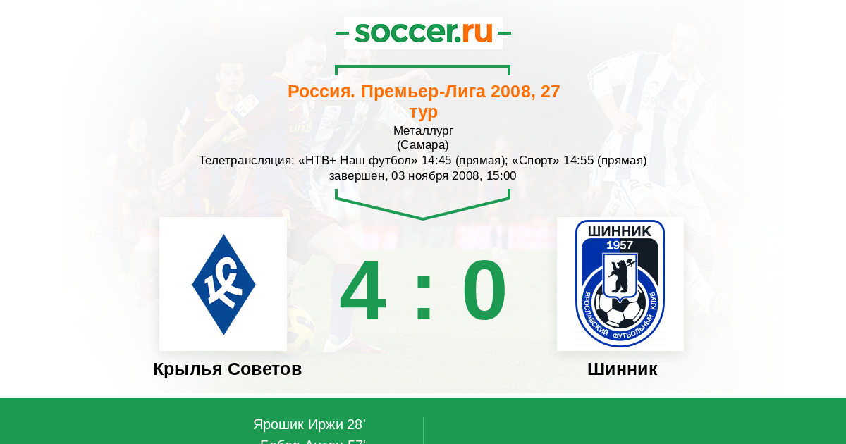 Россия. Премьер-Лига 12.07.2008 Шинник Логотип футбольный клуб Шинник (Ярославль) 0:0 Логотип футбольный клуб Крылья Советов (Самара) Крылья Советов