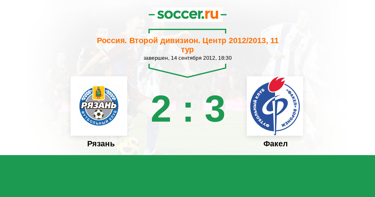 Россия. Вторая лига. Группа 3 11.10.2014 Рязань Логотип футбольный клуб Рязань 0:0 Логотип футбольный клуб Факел (Воронеж) Факел
