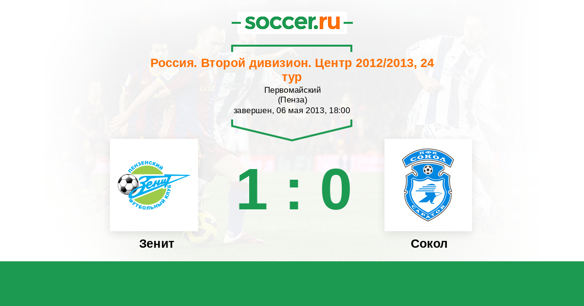 Россия. Вторая лига. Группа 3 09.09.2012 Сокол Логотип футбольный клуб Сокол (Саратов) 1:1 Логотип футбольный клуб Зенит (Пенза) Зенит