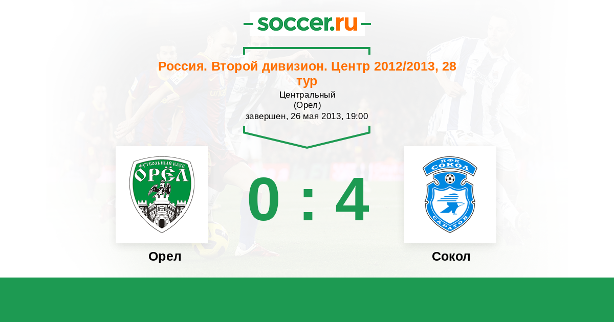 Россия. Вторая лига. Группа 3 30.09.2012 Сокол Логотип футбольный клуб Сокол (Саратов) 1:0 Логотип футбольный клуб Орел Орел