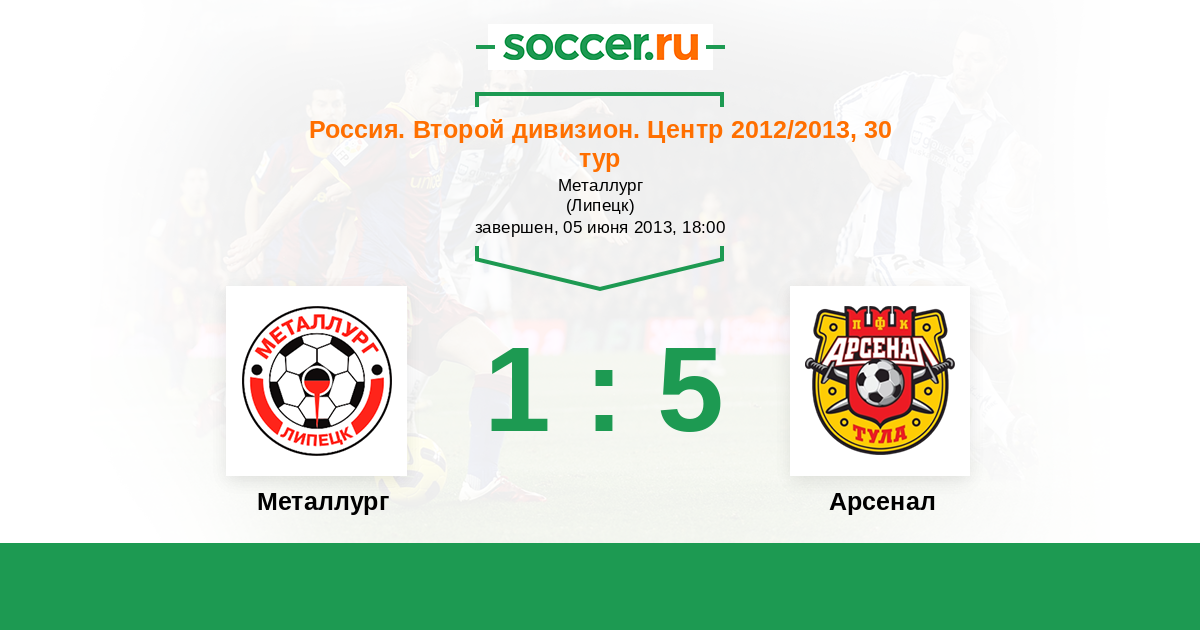 Россия. Вторая лига. Группа 3 16.07.2012 Арсенал Логотип футбольный клуб Арсенал (Тула) 1:2 Логотип футбольный клуб Металлург (Липецк) Металлург