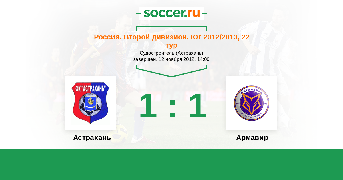Россия. Вторая лига. Группа 1 07.05.2012 Астрахань Логотип футбольный клуб Астрахань 0:1 Логотип футбольный клуб Торпедо Армавир Торпедо Армавир