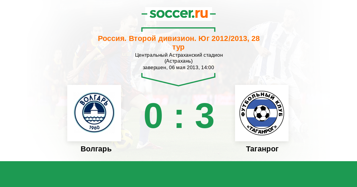 Россия. Вторая лига. Группа 1 04.08.2013 Волгарь Логотип футбольный клуб Волгарь (Астрахань) 3:0 Логотип футбольный клуб Таганрог Таганрог