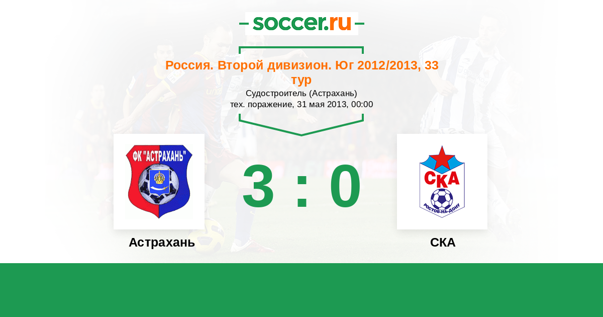 Россия. Вторая лига. Группа 1 25.05.2012 СКА Логотип футбольный клуб СКА (Ростов-на-Дону) 1:4 Логотип футбольный клуб Астрахань Астрахань