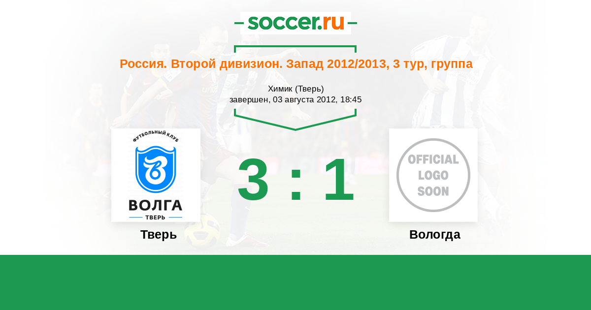 Россия. Вторая лига. Группа 2 17.09.2013 Тверь Логотип футбольный клуб Тверь 2:2 Логотип футбольный клуб Вологда Вологда