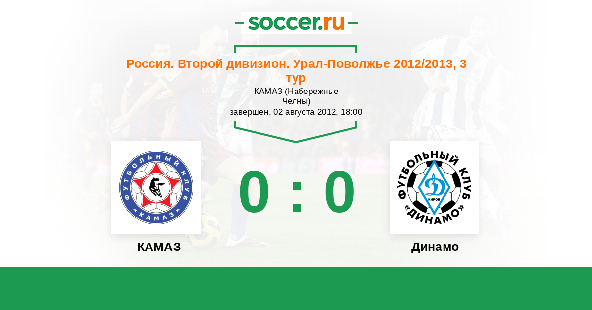 Россия. Вторая лига. Группа 4 14.09.2013 Динамо Киров Логотип футбольный клуб Динамо Киров 1:2 Логотип футбольный клуб КАМАЗ (Набережные Челны) КАМАЗ