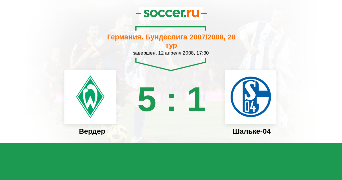 Германия. Бундеслига 23.08.2008 Вердер Логотип футбольный клуб Вердер (Бремен) 1:1 Логотип футбольный клуб Шальке-04 (Гельзенкирхен) Шальке-04
