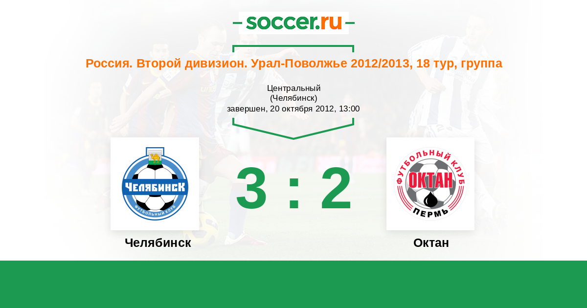 Россия. Вторая лига. Группа 4 24.07.2012 Октан Логотип футбольный клуб Октан (Пермь) 0:2 Логотип футбольный клуб Челябинск Челябинск