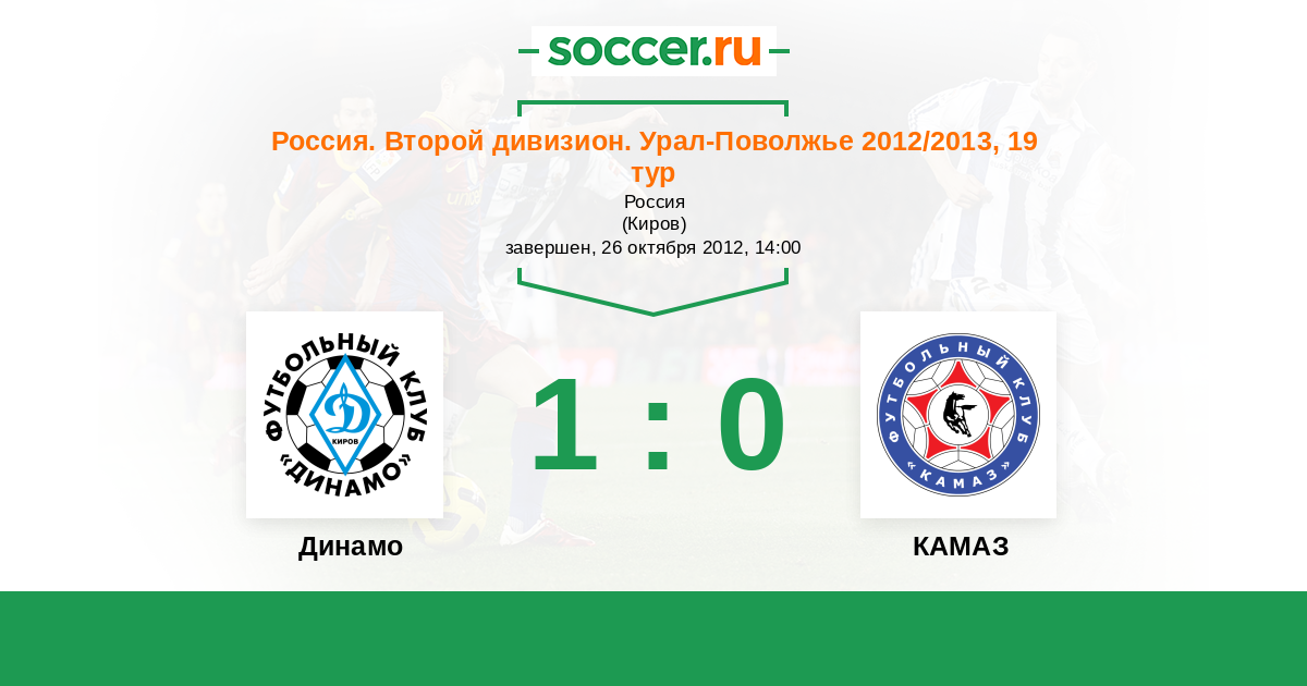 Россия. Вторая лига. Группа 4 14.09.2013 Динамо Киров Логотип футбольный клуб Динамо Киров 1:2 Логотип футбольный клуб КАМАЗ (Набережные Челны) КАМАЗ