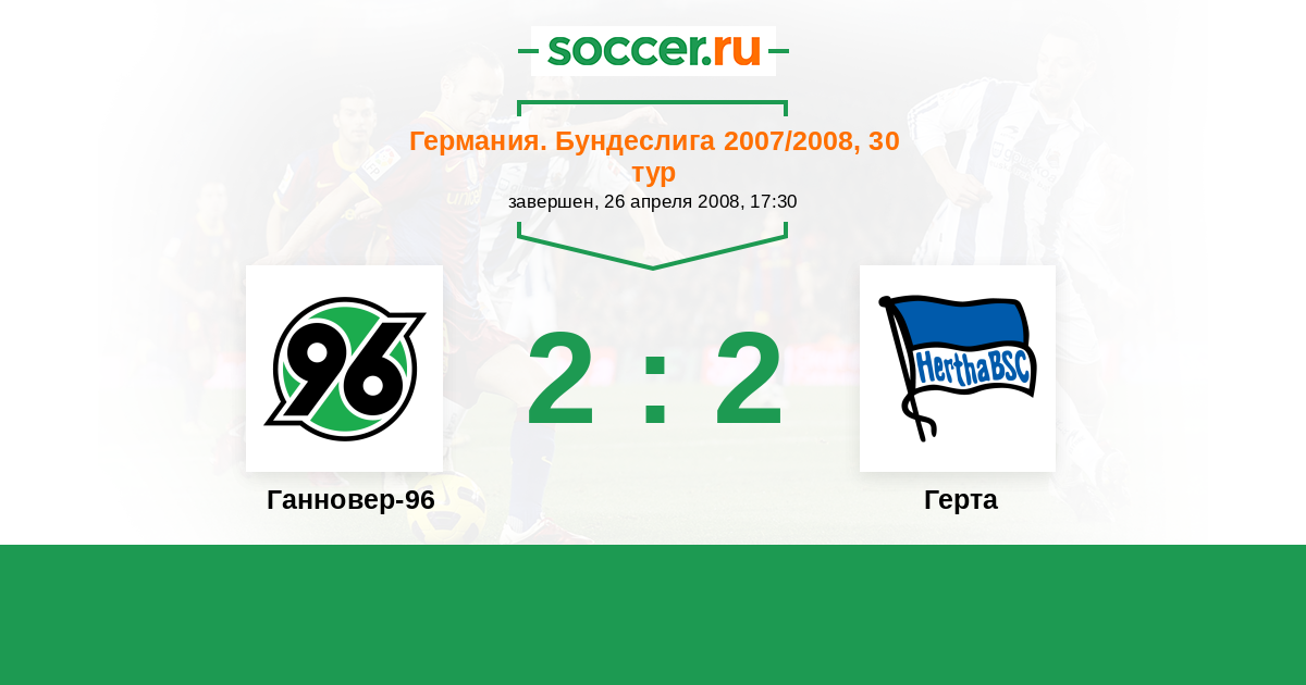 Германия. Бундеслига 2 26.04.2024 Герта Логотип футбольный клуб Герта (Берлин) 1:1 Логотип футбольный клуб Ганновер-96 Ганновер-96