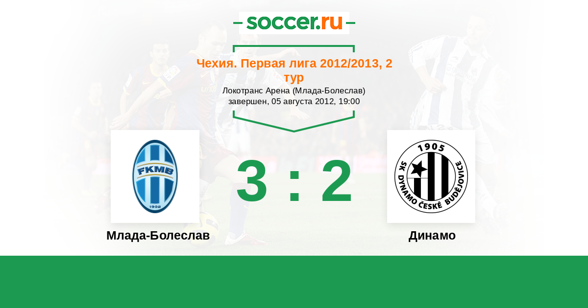 Чехия. Первая Лига 09.05.2012 Динамо Логотип футбольный клуб Динамо (Ческе-Будеевице) 1:0 Логотип футбольный клуб Млада-Болеслав Млада-Болеслав