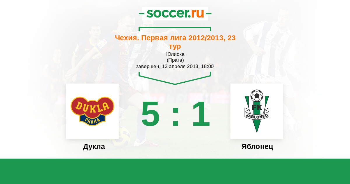 Чехия. Первая Лига 15.04.2016 Дукла Логотип футбольный клуб Дукла (Прага) 6:1 Логотип футбольный клуб Яблонец (Яблонец-над-Нисоу) Яблонец