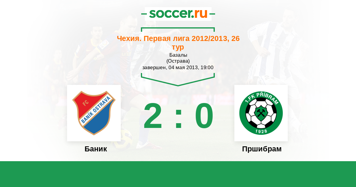 Чехия. Первая Лига 05.05.2012 Пршибрам Логотип футбольный клуб Пршибрам 1:2 Логотип футбольный клуб Баник (Острава) Баник