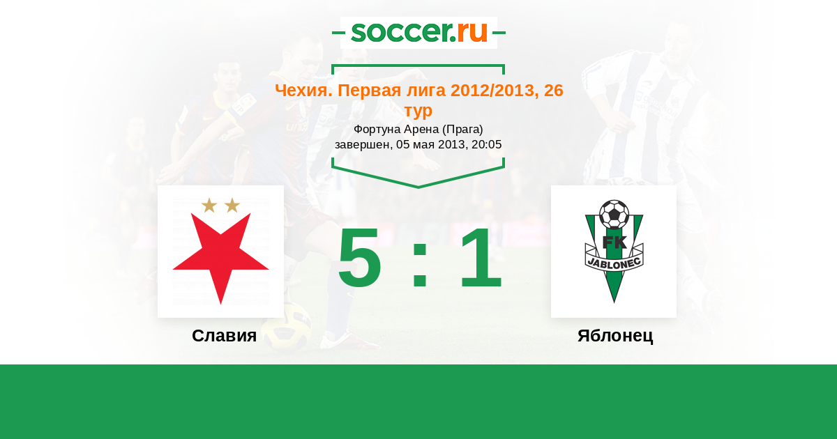 Чехия. Первая Лига 08.05.2010 Славия Логотип футбольный клуб Славия (Прага) 0:3 Логотип футбольный клуб Яблонец (Яблонец-над-Нисоу) Яблонец