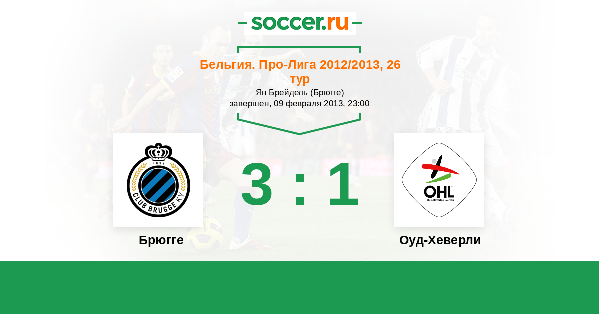 Бельгия. Про-Лига 20.10.2012 Оуд-Хеверли Логотип футбольный клуб Оуд-Хеверли (Левен) 4:1 Логотип футбольный клуб Брюгге Брюгге