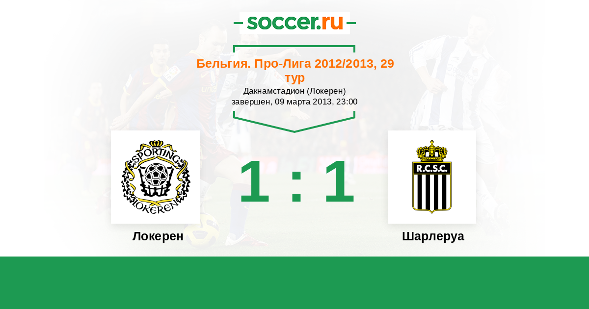 Бельгия. Про-Лига 12.02.2011 Локерен Логотип футбольный клуб Локерен 1:1 Логотип футбольный клуб Шарлеруа Шарлеруа