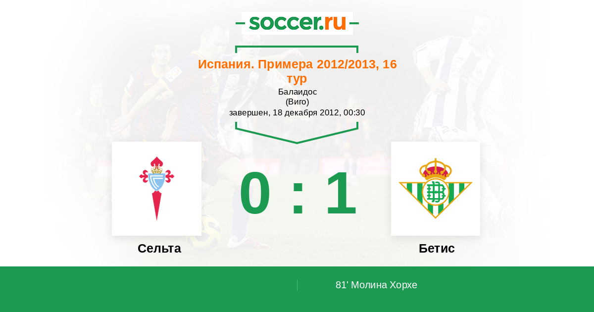 Испания. Примера 12.05.2013 Бетис Логотип футбольный клуб Бетис (Севилья) 1:0 Логотип футбольный клуб Сельта (Виго) Сельта