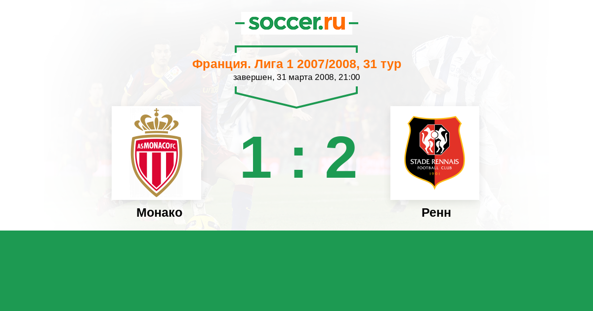 Франция. Лига 1 03.11.2007 Ренн Логотип футбольный клуб Ренн 0:1 Логотип футбольный клуб Монако Монако