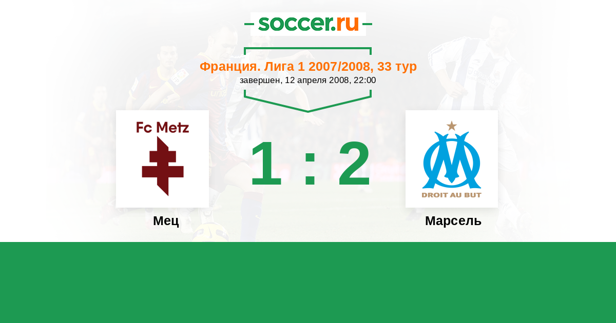 Франция. Лига 1 24.11.2007 Марсель Логотип футбольный клуб Марсель 3:1 Логотип футбольный клуб Мец Мец