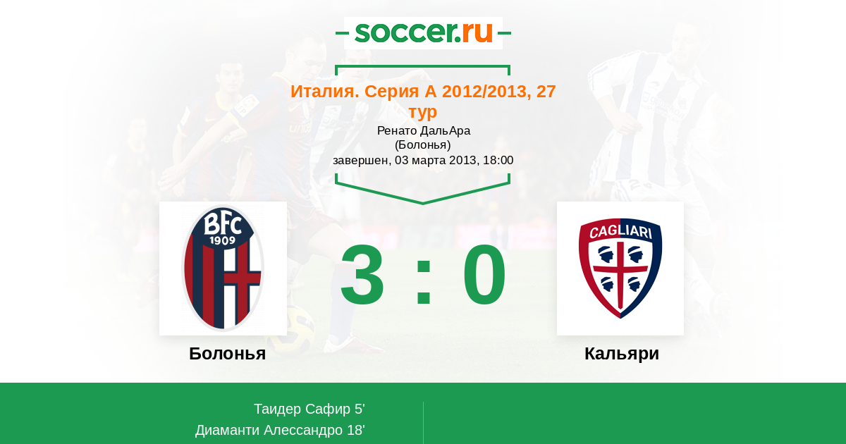 Италия. Серия А 23.03.2014 Болонья Логотип футбольный клуб Болонья 1:0 Логотип футбольный клуб Кальяри Кальяри