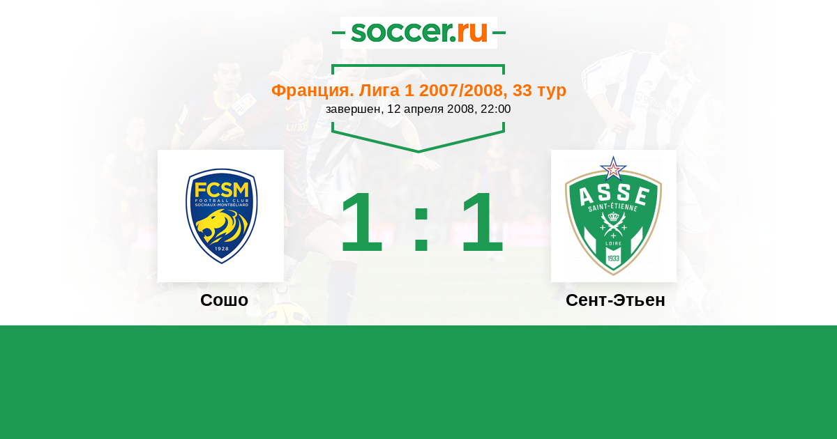 Франция. Лига 1 28.08.2011 Сошо Логотип футбольный клуб Сошо (Монбельяр) 2:1 Логотип футбольный клуб Сент-Этьен Сент-Этьен