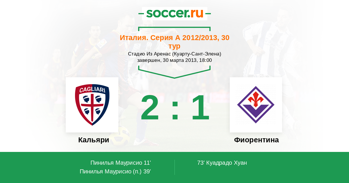 Италия. Серия А 04.11.2012 Фиорентина Логотип футбольный клуб Фиорентина (Флоренция) 4:1 Логотип футбольный клуб Кальяри Кальяри
