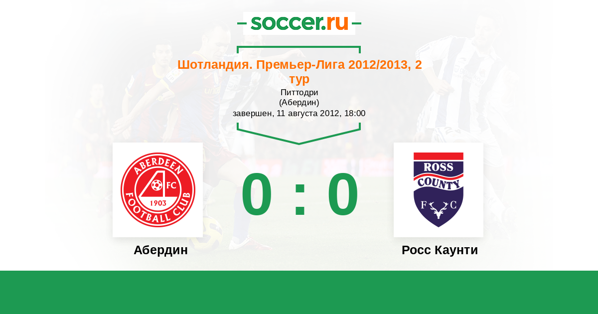 Шотландия. Премьер-Лига 03.11.2012 Росс Каунти Логотип футбольный клуб Росс Каунти (Дингволл) 2:1 Логотип футбольный клуб Абердин Абердин