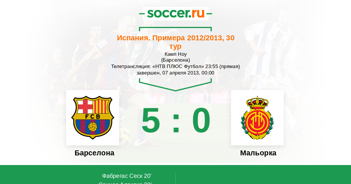Испания. Примера 29.10.2011 Барселона Логотип футбольный клуб Барселона 5:0 Логотип футбольный клуб Мальорка (Пальма-де-Мальорка) Мальорка