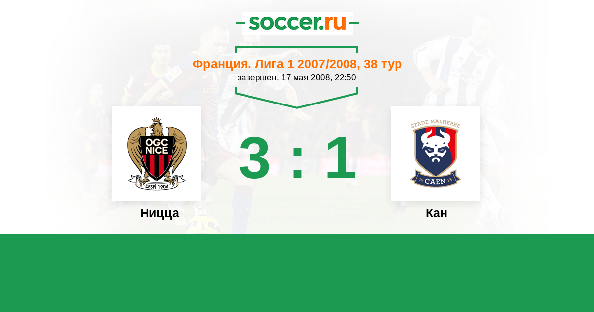 Франция. Лига 1 04.08.2007 Кан Логотип футбольный клуб Кан 1:0 Логотип футбольный клуб Ницца Ницца