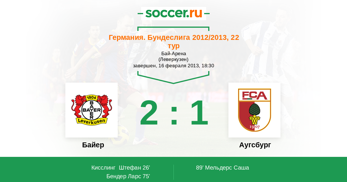 Германия. Бундеслига 18.02.2012 Байер Логотип футбольный клуб Байер (Леверкузен) 4:1 Логотип футбольный клуб Аугсбург Аугсбург