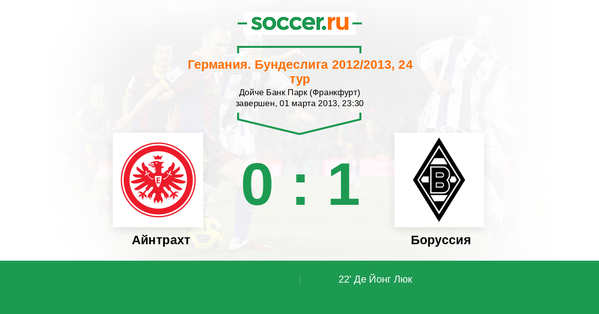 Германия. Бундеслига 07.10.2012 Боруссия Логотип футбольный клуб Боруссия (Менхенгладбах) 2:0 Логотип футбольный клуб Айнтрахт (Франкфурт) Айнтрахт