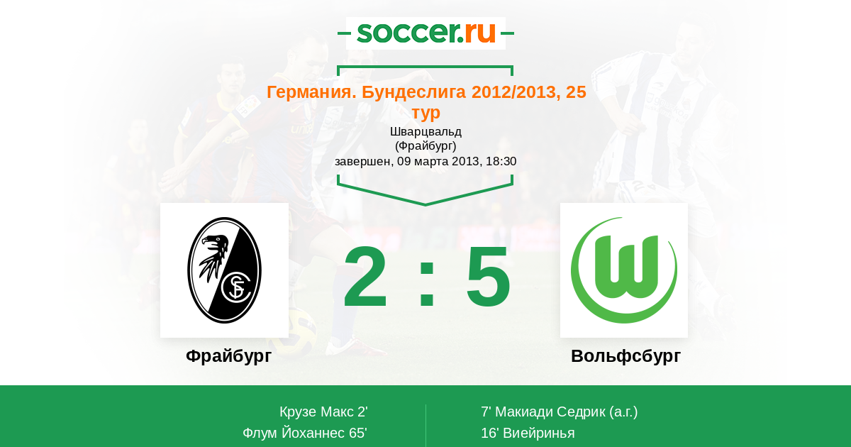 Германия. Бундеслига 20.10.2012 Вольфсбург Логотип футбольный клуб Вольфсбург 0:2 Логотип футбольный клуб Фрайбург Фрайбург