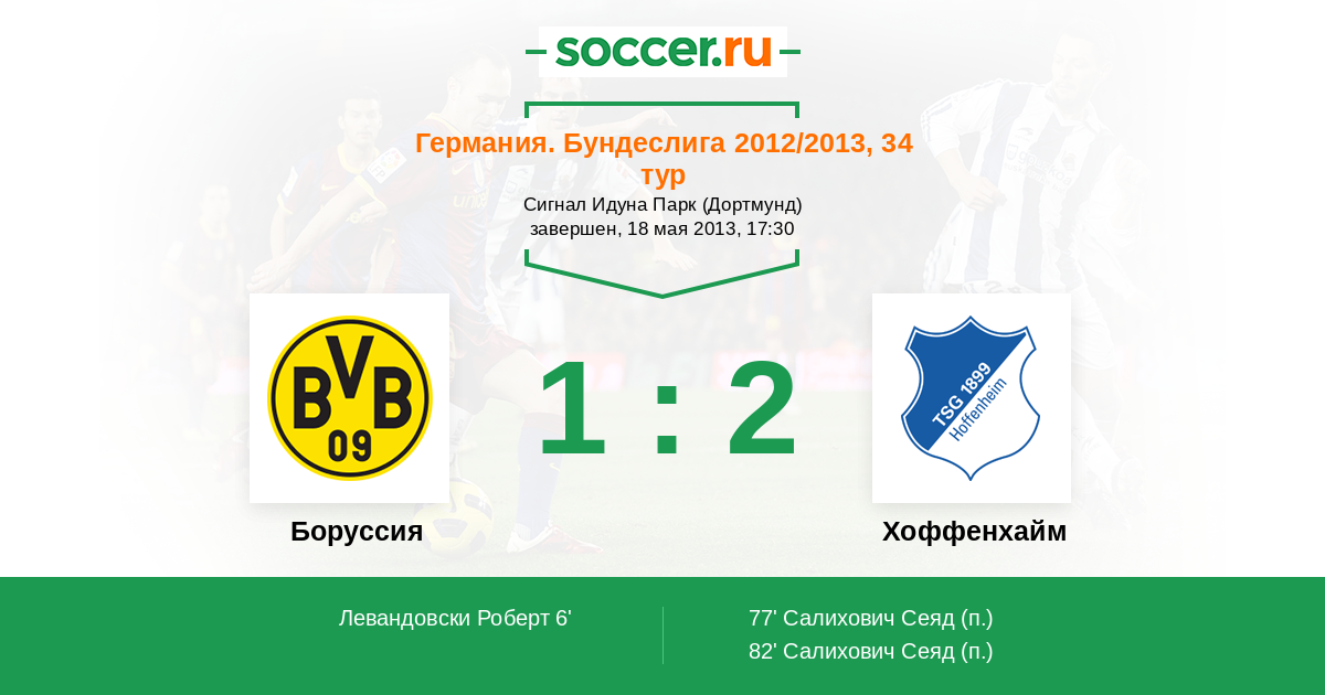 Германия. Бундеслига 03.05.2014 Боруссия Логотип футбольный клуб Боруссия (Дортмунд) 3:2 Логотип футбольный клуб Хоффенхайм (Зинсхайм) Хоффенхайм