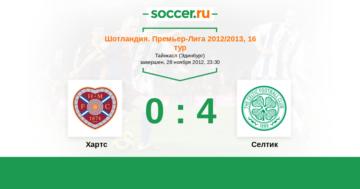 Шотландия. Премьер-Лига 07.10.2012 Селтик Логотип футбольный клуб Селтик (Глазго) 1:0 Логотип футбольный клуб Хартс (Эдинбург) Хартс