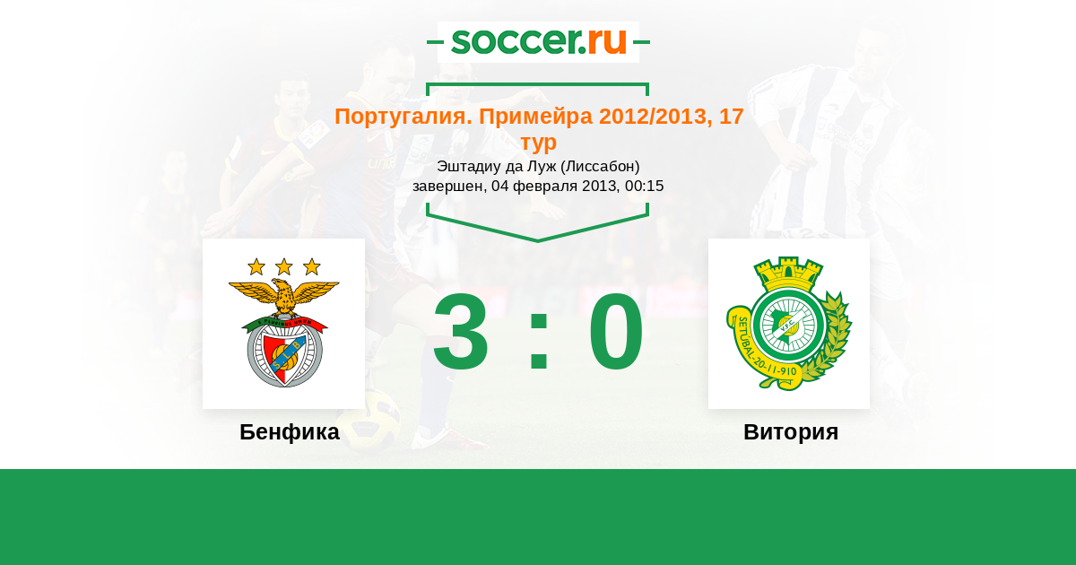 Португалия. Примейра 14.01.2012 Бенфика Логотип футбольный клуб Бенфика (Лиссабон) 4:1 Логотип футбольный клуб Витория (Сетубал) Витория