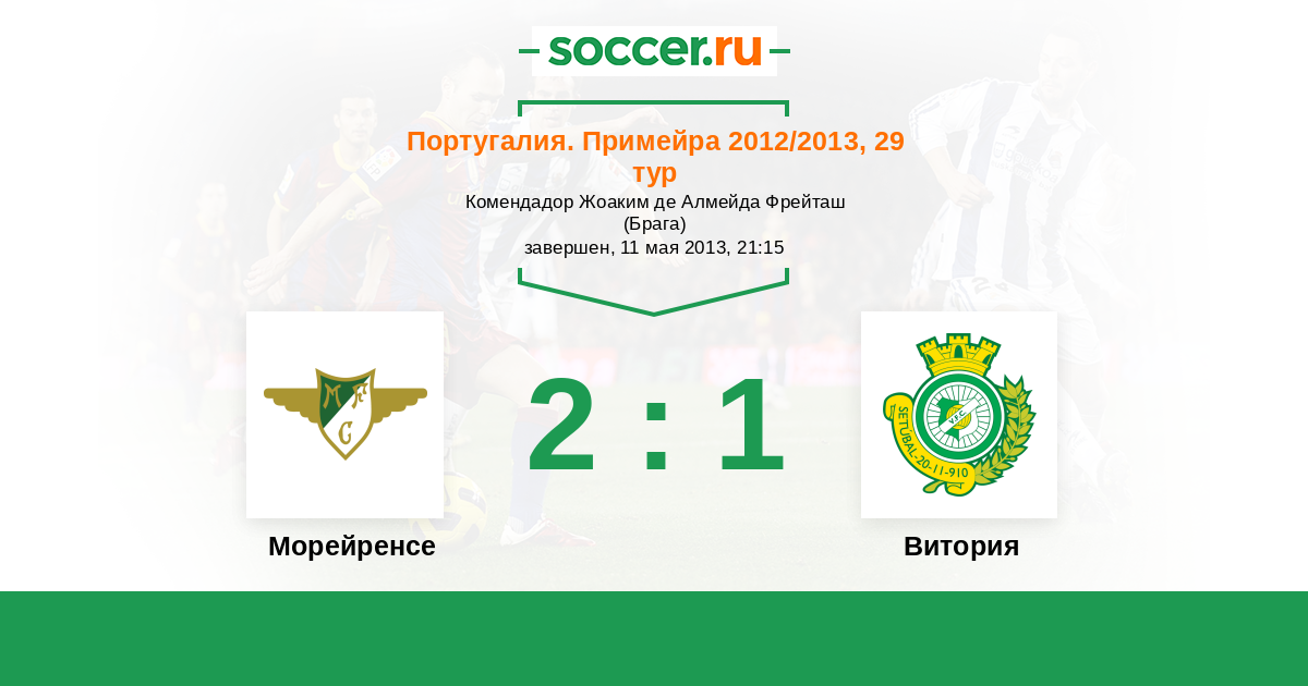 Португалия. Примейра 13.01.2013 Витория Логотип футбольный клуб Витория (Сетубал) 5:0 Логотип футбольный клуб Морейренcе (Морейра-де-Конегуш) Морейренcе