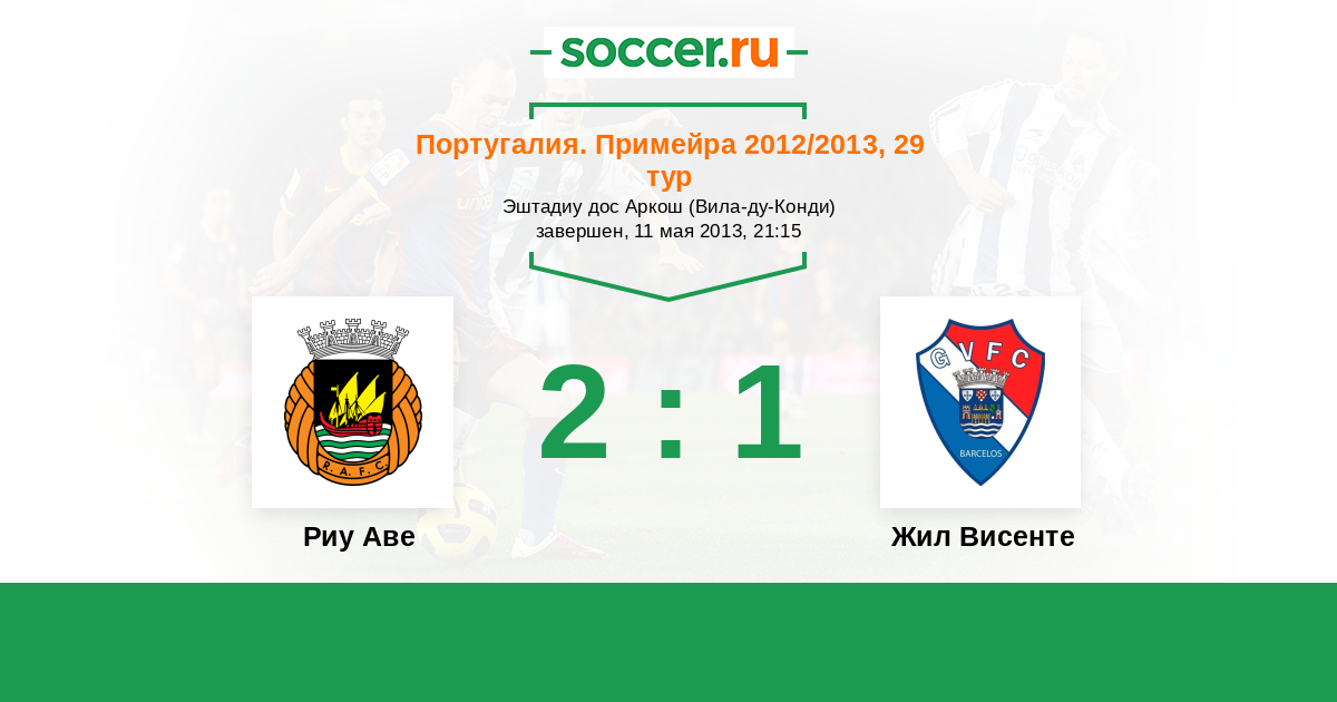 Португалия. Примейра 13.01.2013 Жил Висенте Логотип футбольный клуб Жил Висенте (Барселуш) 0:1 Логотип футбольный клуб Риу Аве (Вила-ду-Конди) Риу Аве