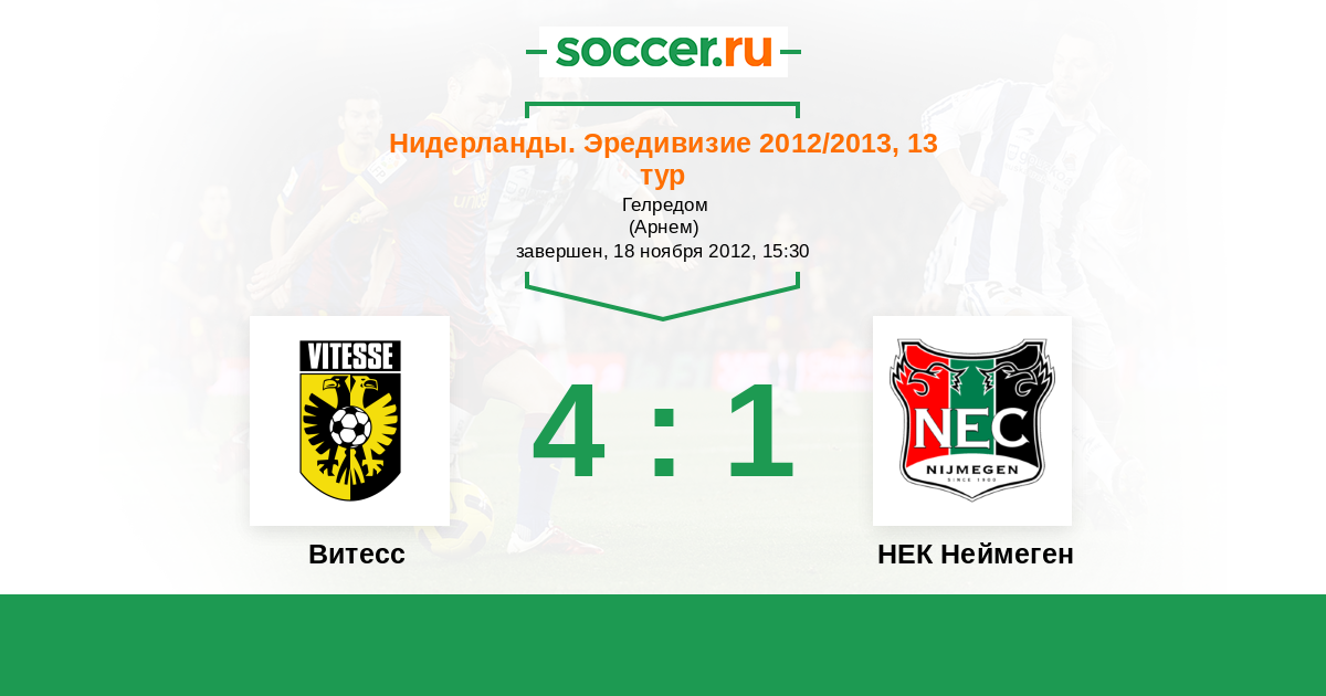 Нидерланды. Эредивизи 03.04.2011 Витесс Логотип футбольный клуб Витесс (Арнем) 2:1 Логотип футбольный клуб НЕК Неймеген НЕК Неймеген