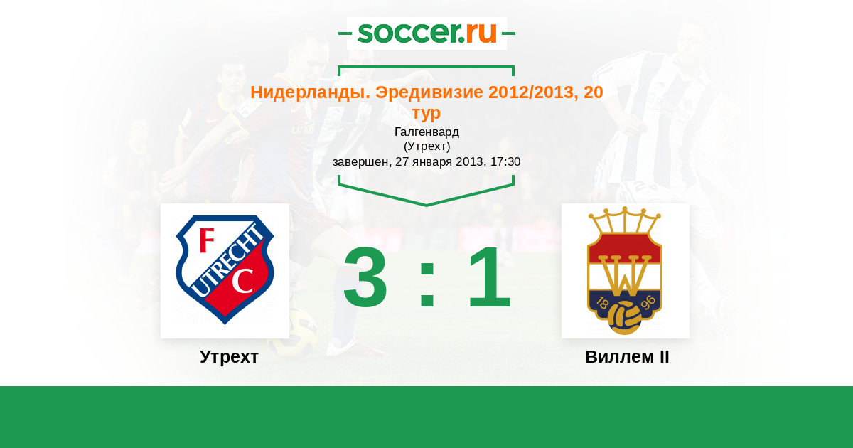 Нидерланды. Эредивизи 03.11.2012 Виллем II Логотип футбольный клуб Виллем II (Тилбург) 1:5 Логотип футбольный клуб Утрехт Утрехт