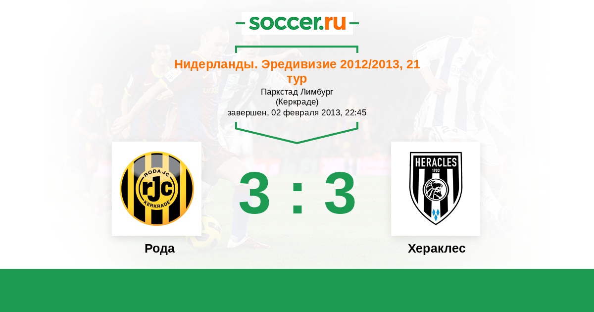 Нидерланды. Эредивизи 19.02.2010 Рода Логотип футбольный клуб Рода (Керкраде) 2:1 Логотип футбольный клуб Хераклес (Алмело) Хераклес