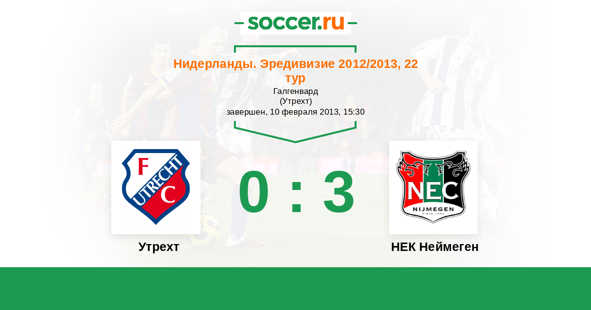 Нидерланды. Эредивизи 06.12.2013 Утрехт Логотип футбольный клуб Утрехт 2:0 Логотип футбольный клуб НЕК Неймеген НЕК Неймеген